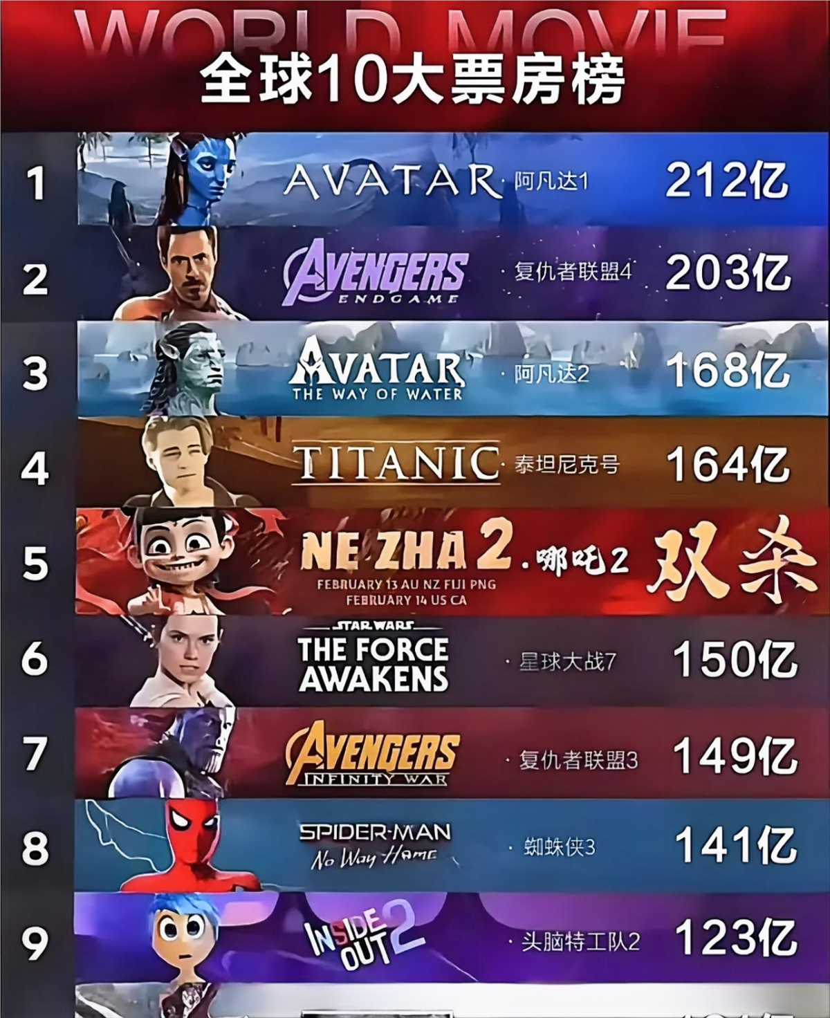 【全球票房前十影史】精致版 (截至2025年数据更新) 阿凡达/复仇者联盟/冰雪奇缘 /泰坦尼克号(建议收藏,慢慢看)