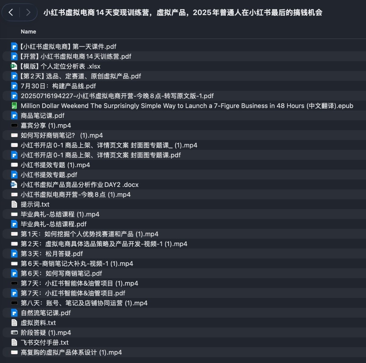 1、本贴标题:小红书虚拟电商14天变现训练营(2025年普通人在小红书最后的搞钱机会)【2.4GB】