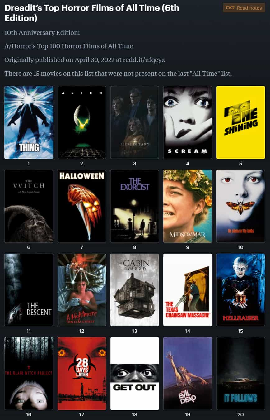 1、本贴标题:【Reddit票选出史上最佳恐怖片Top100部】483GB