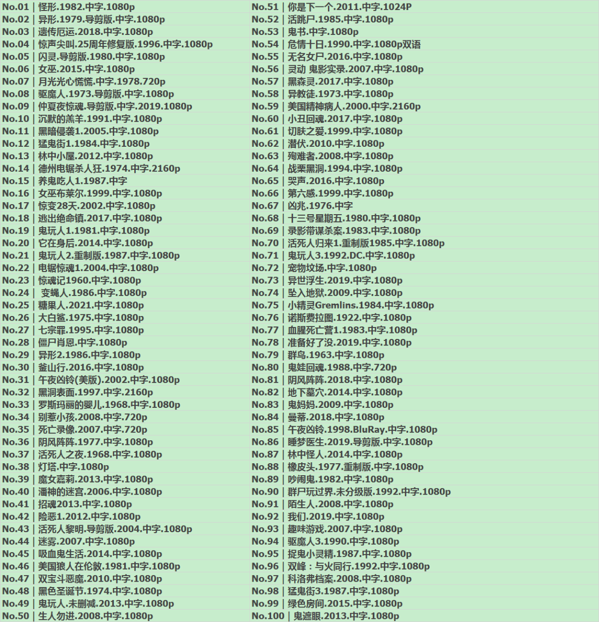 6、【Reddit票选出史上最佳恐怖片Top100部】483GB免费观看全集高清网盘资源