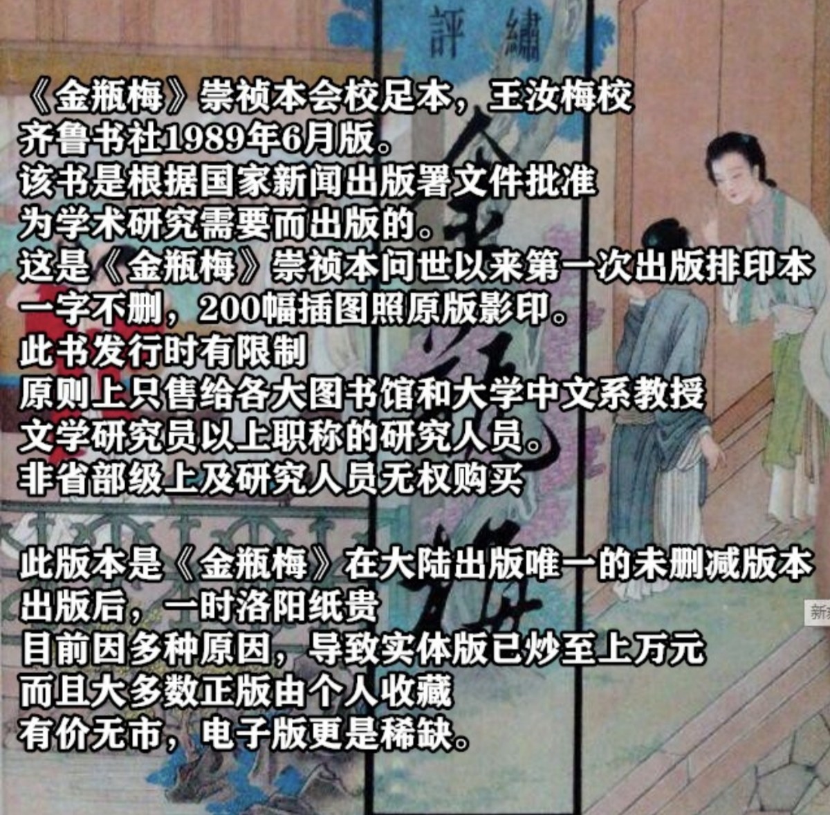 1、本贴标题:【稀缺资源 有价无市】禁大陆唯一未删减版《金瓶梅》精装全彩插图版403M
