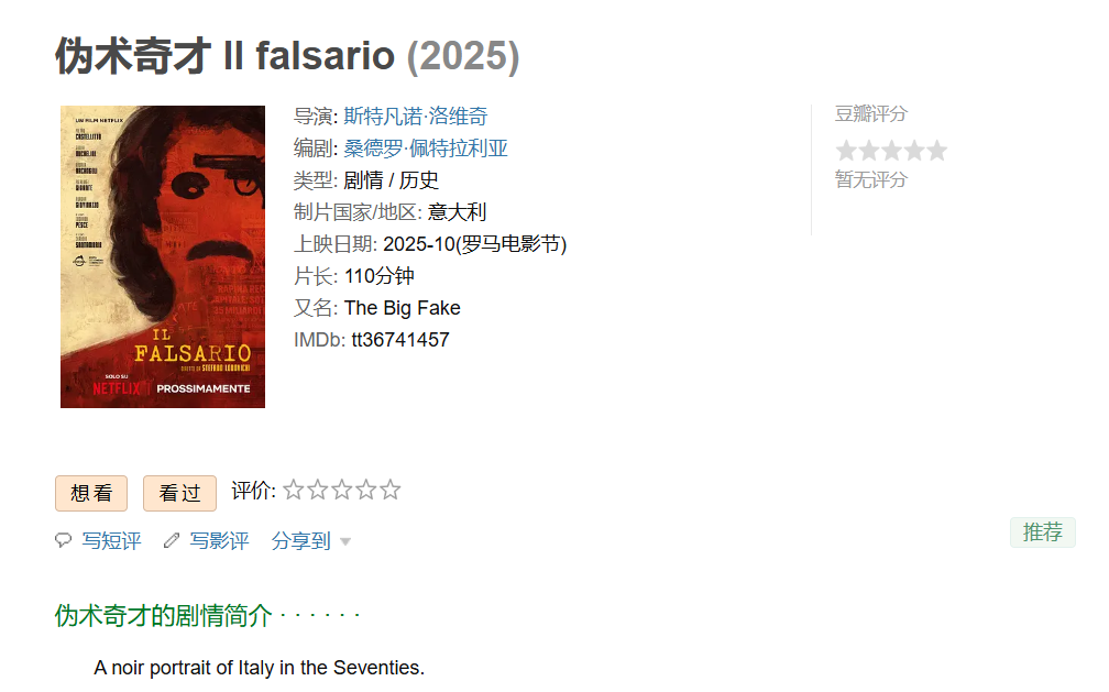 ❤️【奈飞最新伪造题材犯罪剧情片】伪术奇才Il falsario【2026】BD1080P [官方中字] [2.5G]