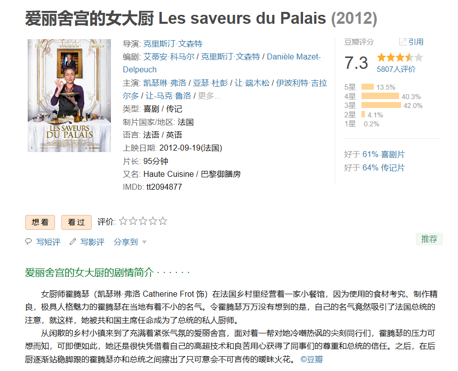 6、❤️【法式美式题材喜剧片】爱丽舍宫的女大厨 Les saveurs du Palais【2012】BD1080P [中文字幕] [5.7G]免费观看全集高清网盘资源