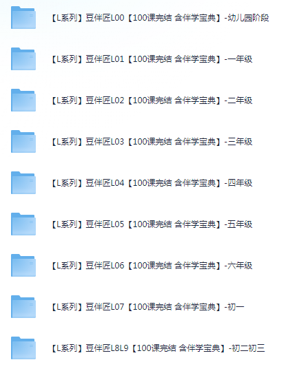 1、本贴标题:豆伴匠【L系列(L0-L9)幼小初】课程【100课完结 含伴学宝典】【258GB】