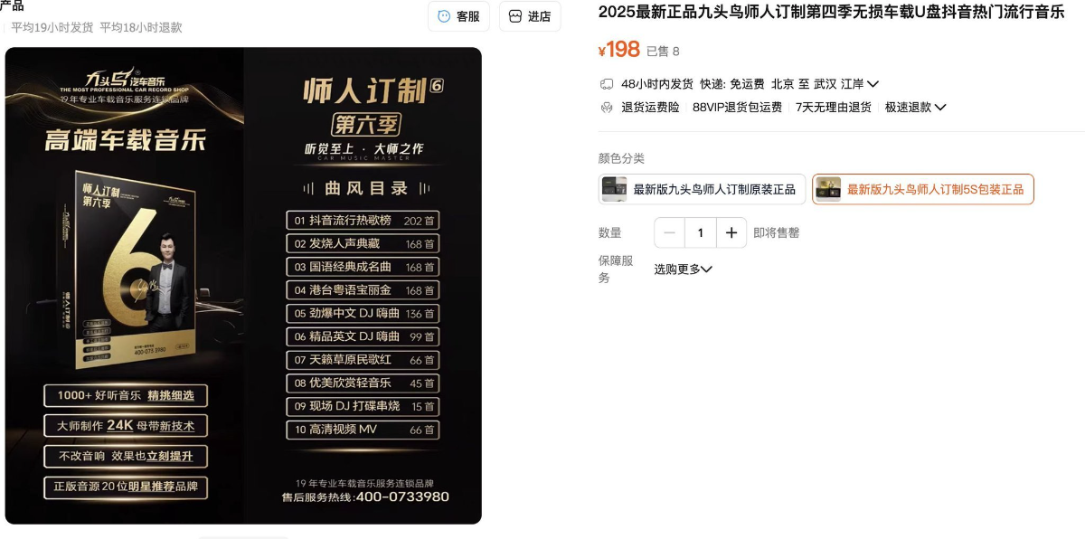 1、本贴标题:价值198的淘宝热卖【2026年九头鸟名车音乐全部车载U盘音乐】【12.4G】